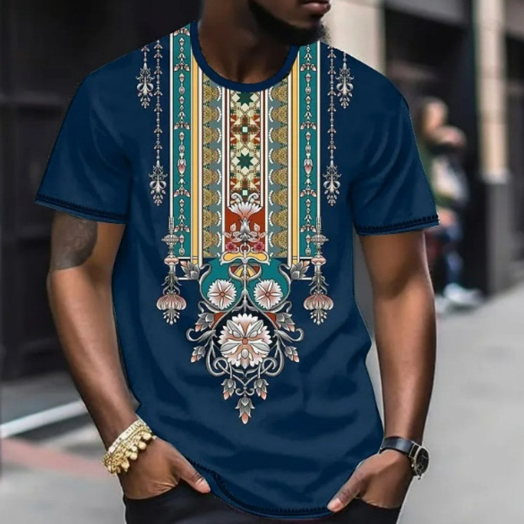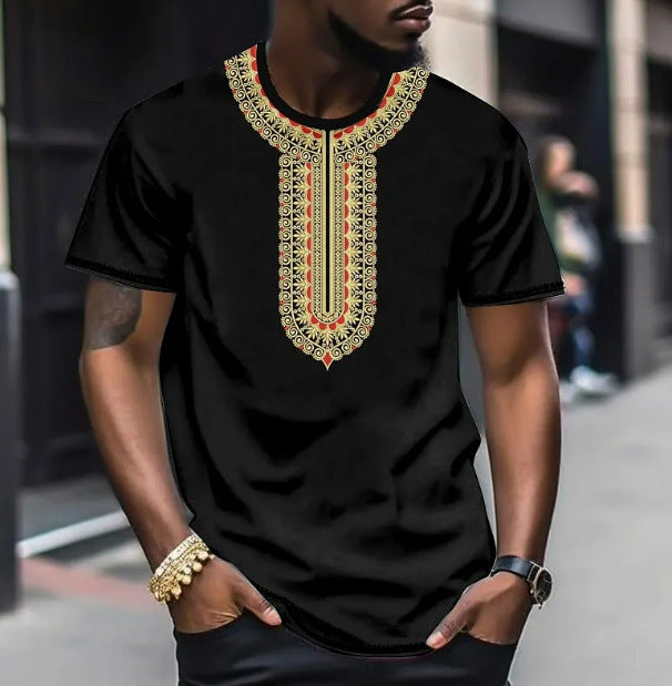 Ethnic Style 3D Digital Printed Round Neck Short-sleeved T-shirt Men