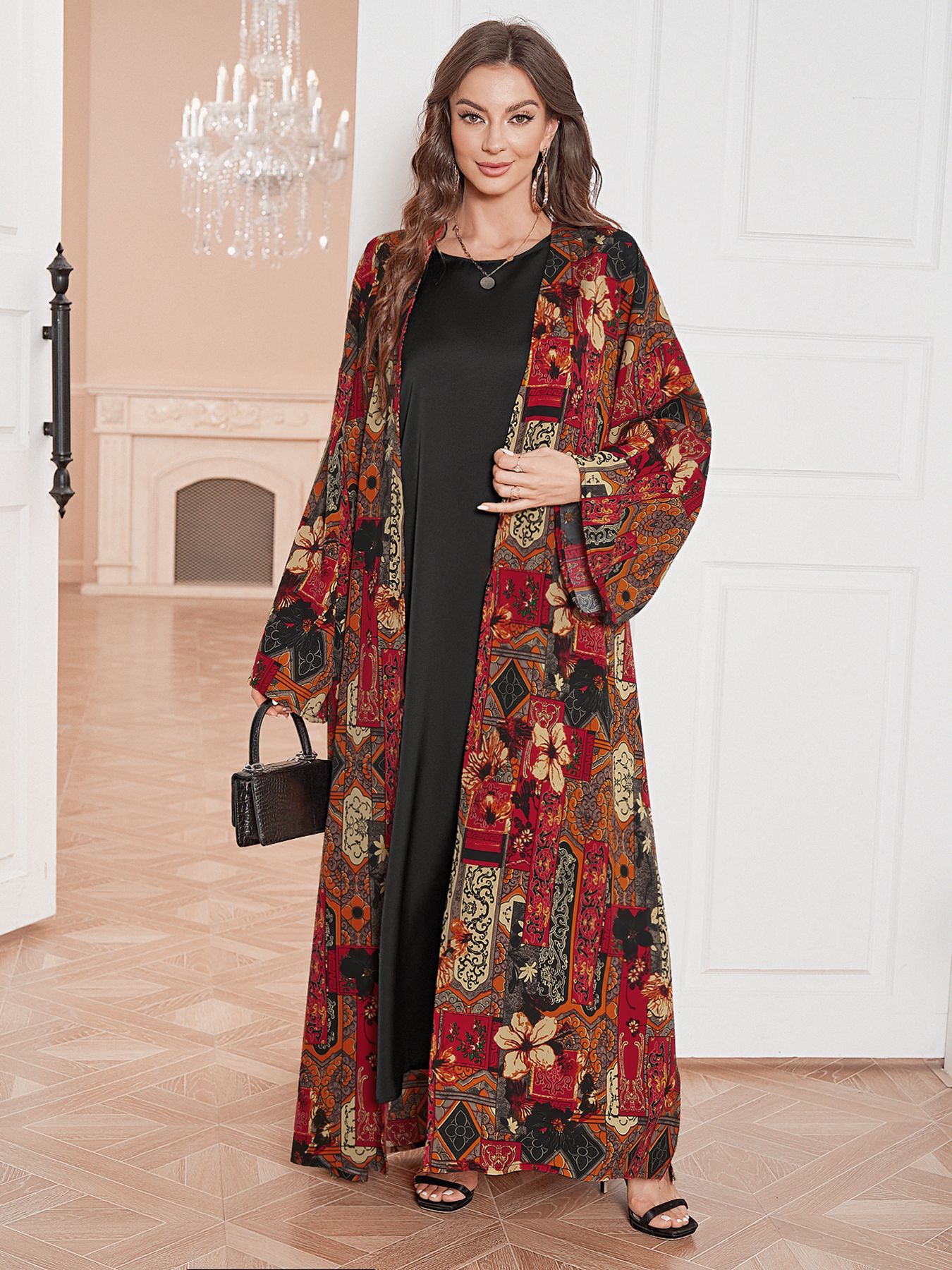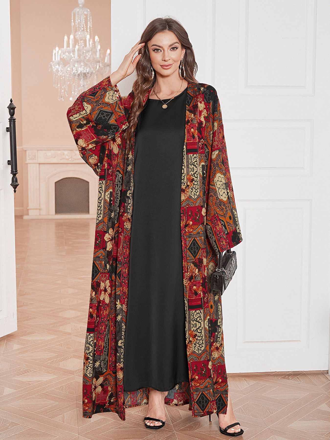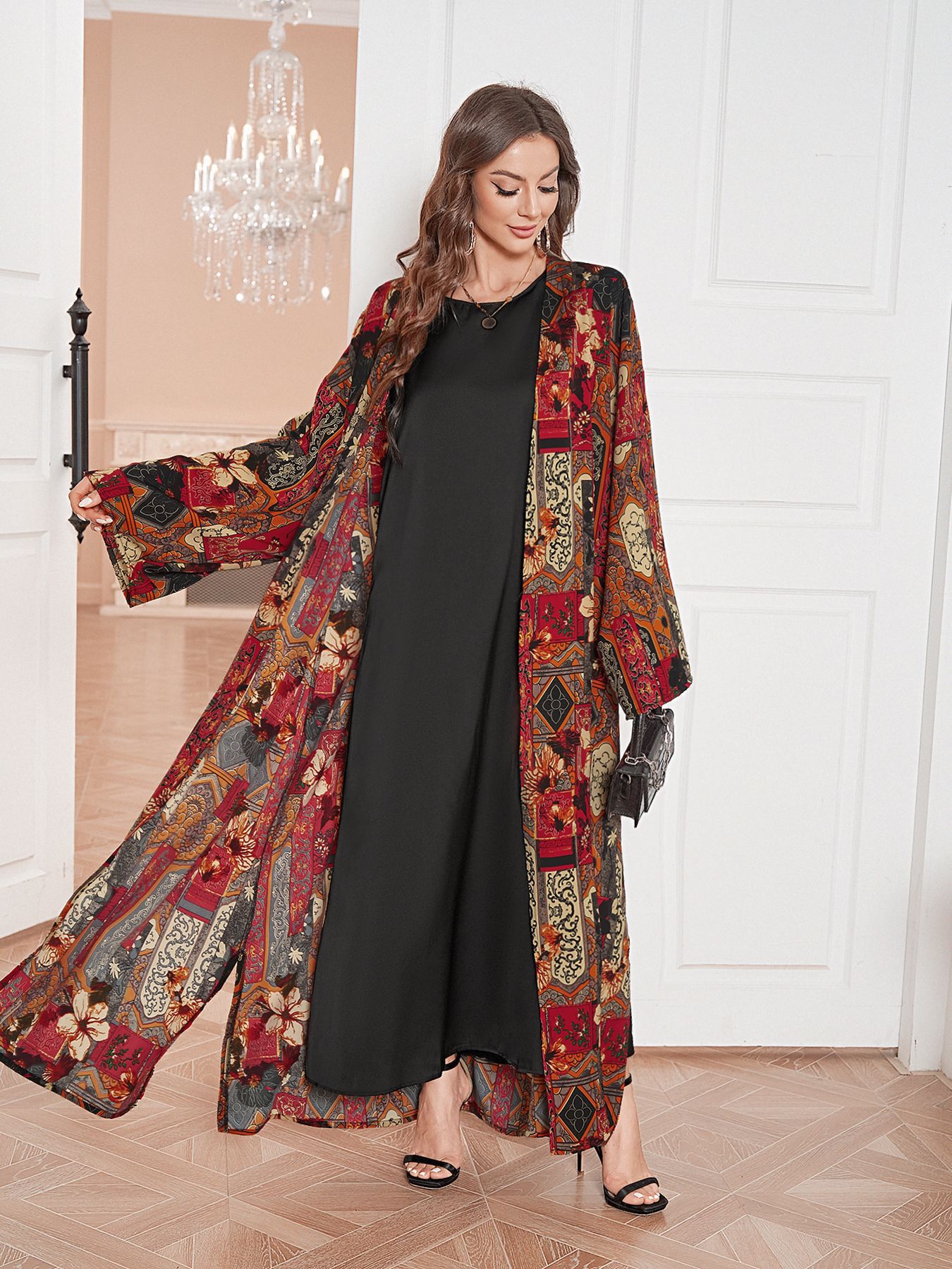 Middle East Dress Shawl Arabic Drop-shoulder Sleeve Printed Robe