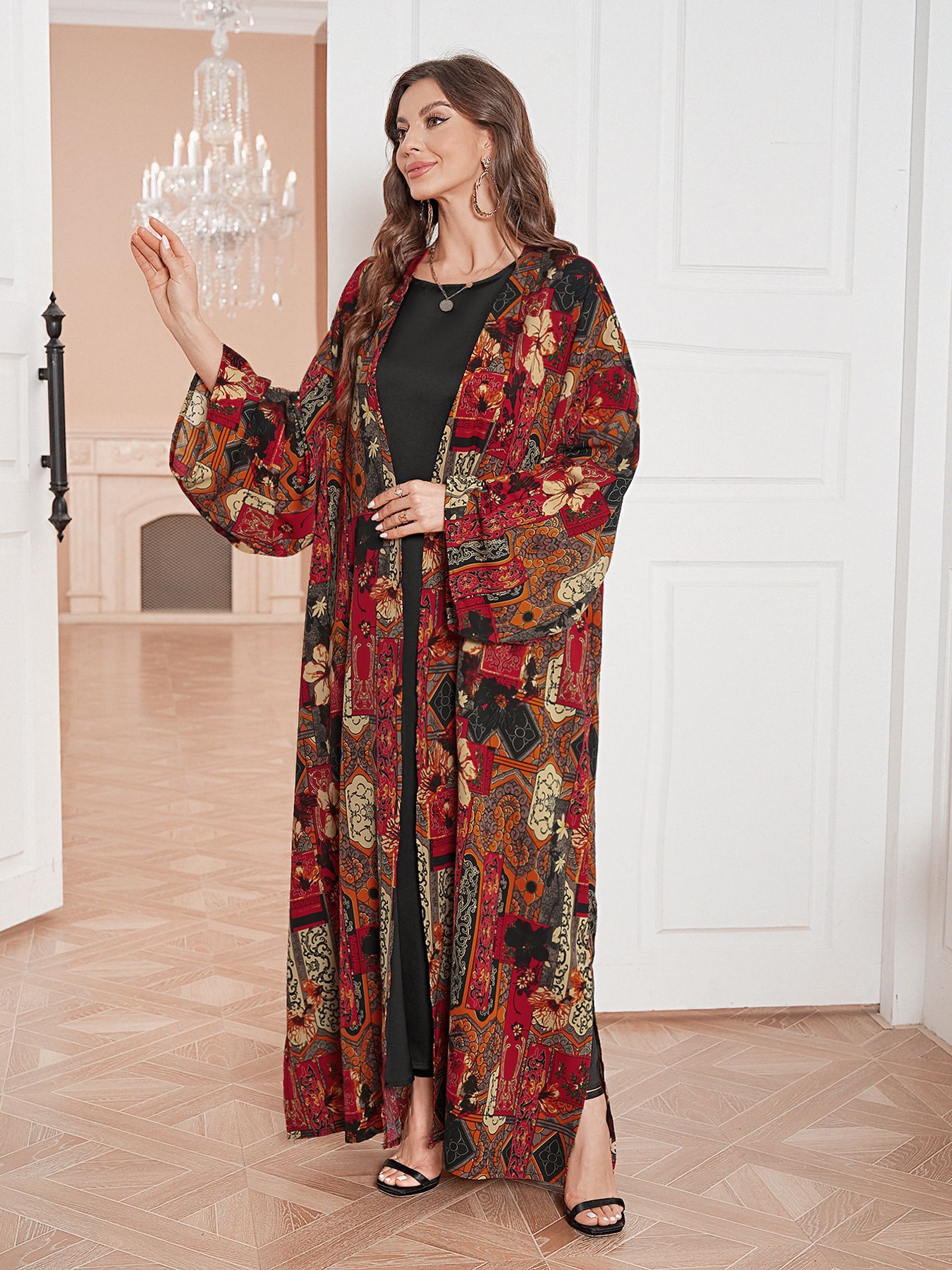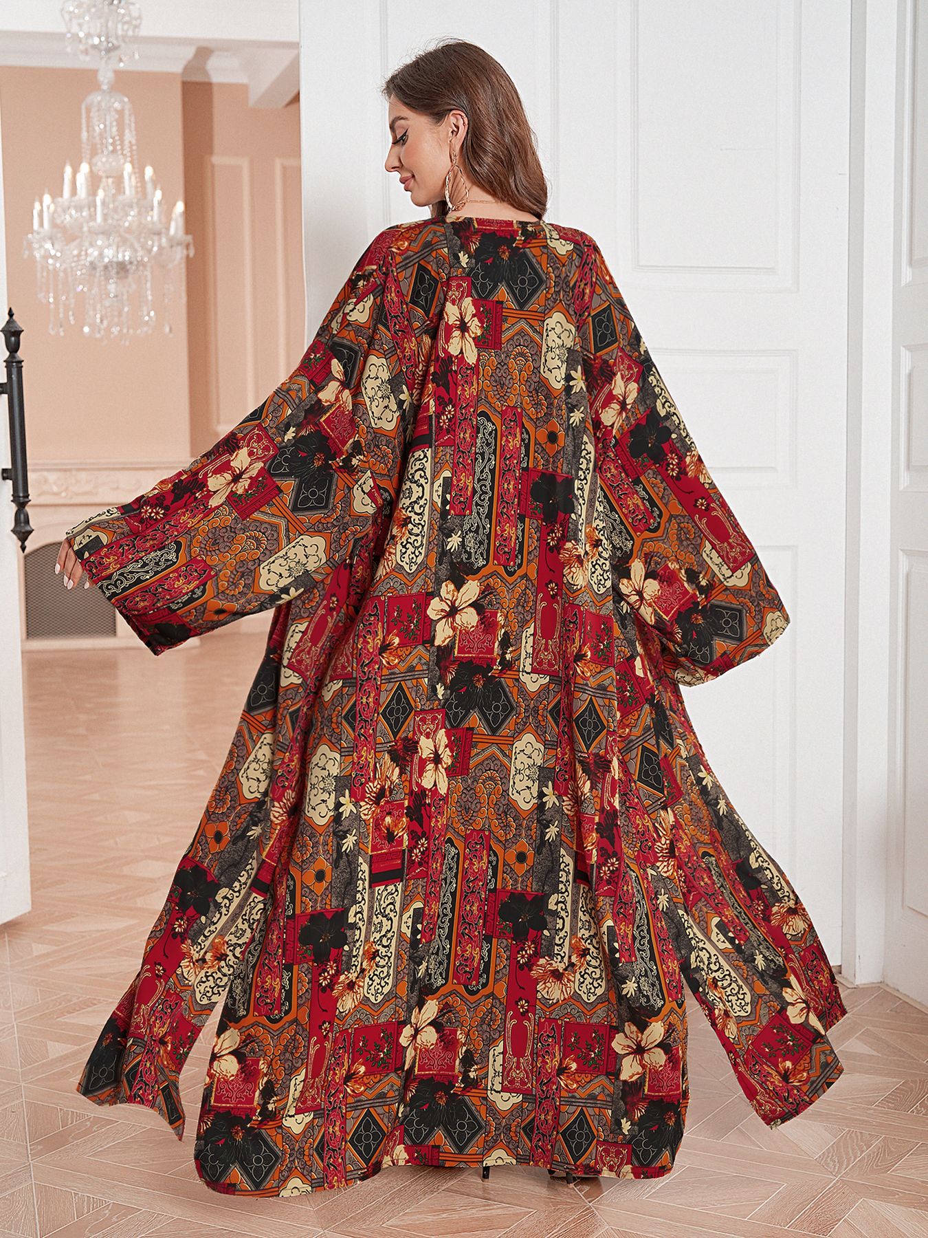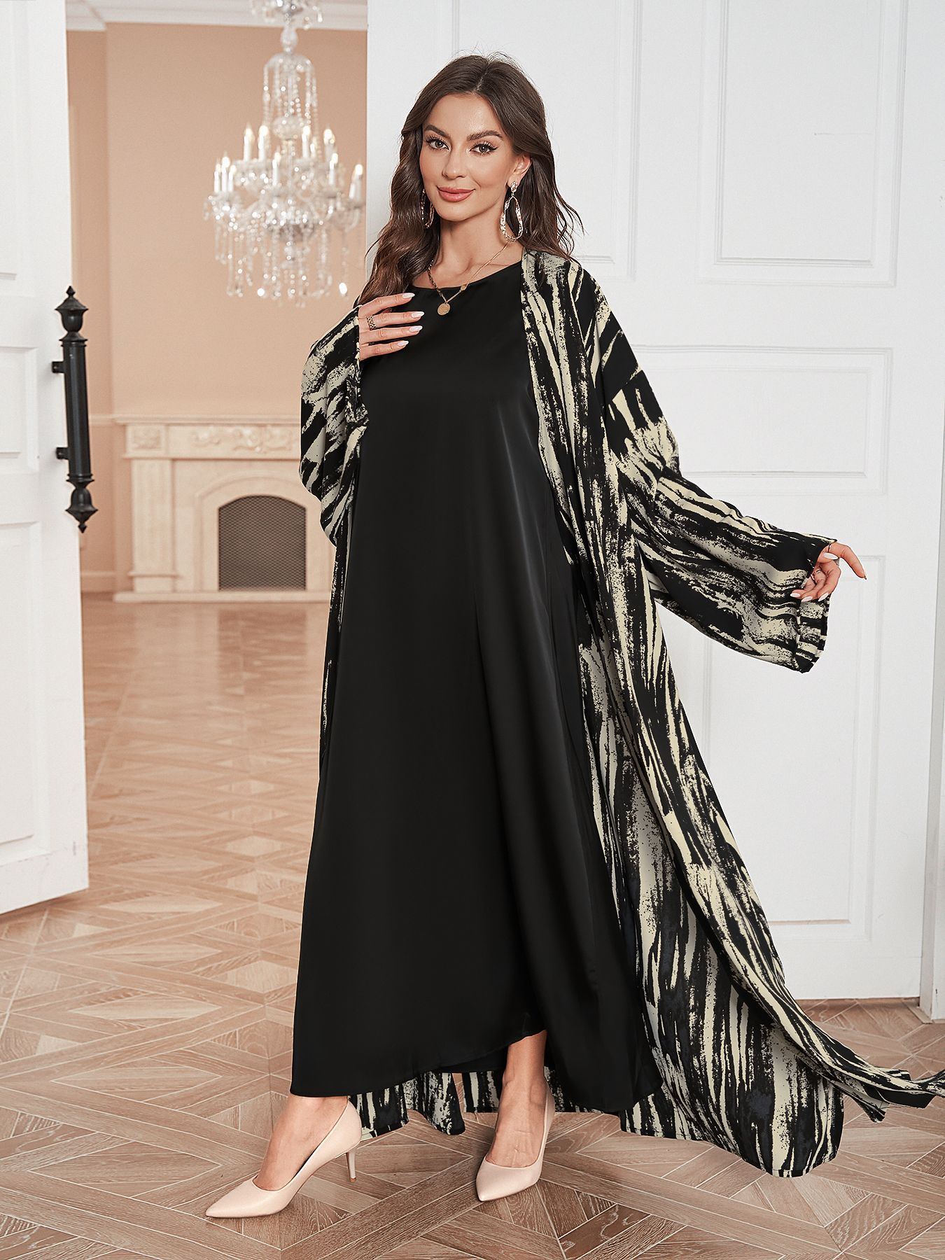 Middle East Dress Shawl Arabic Drop-shoulder Sleeve Printed Robe
