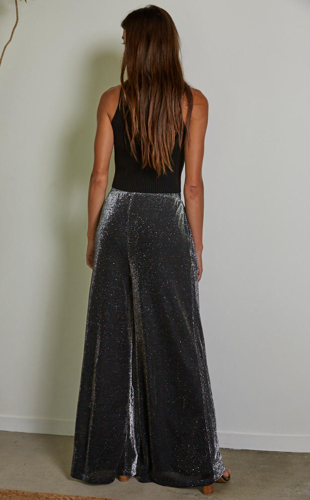 Elevate your everyday style with our Knit Lurex Wide Leg Pants. These stunning shimmering pants feature a touch of metallic sparkle, a comfortable elastic waistband, and practical side pockets. The blend of nylon, polyester, and lurex creates a soft, breathable fabric with a subtle sheen, perfect for day or night. The wide-leg silhouette adds a flowy, flattering touch, while the polyester spandex lining ensures a comfortable and smooth fit.